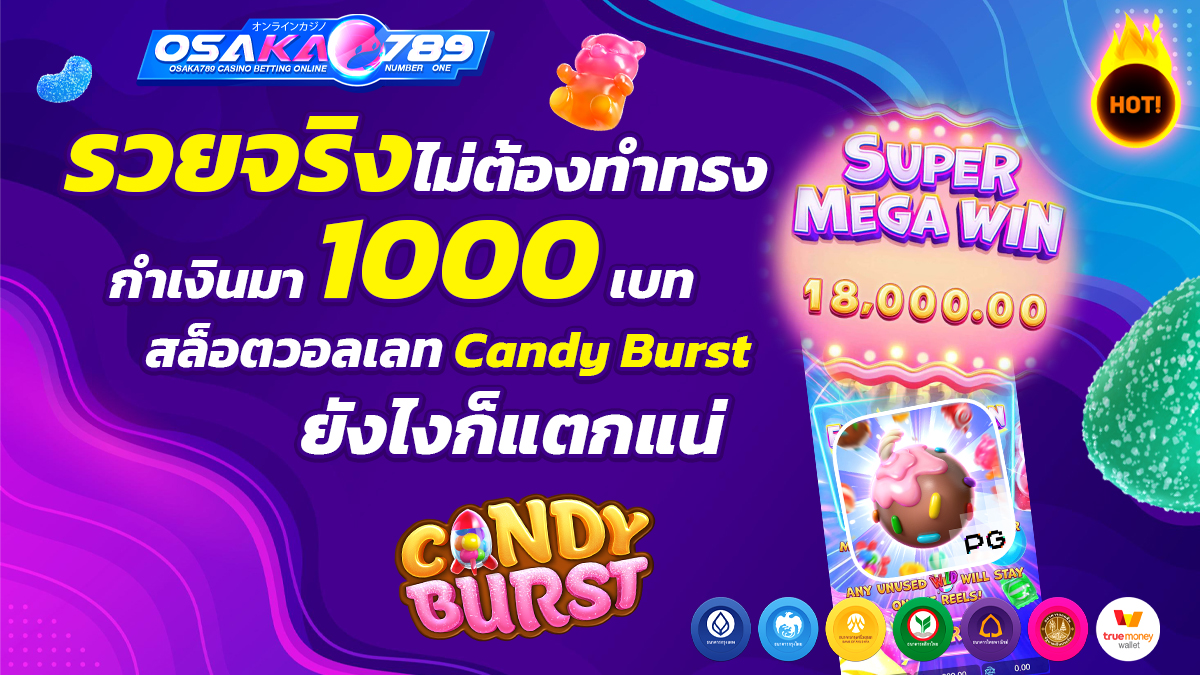 รวยจริงไม่ต้องทำทรง กำเงินมา 1000 เบท สล็อตวอลเลท Candy Burst ยังไงก็แตกแน่