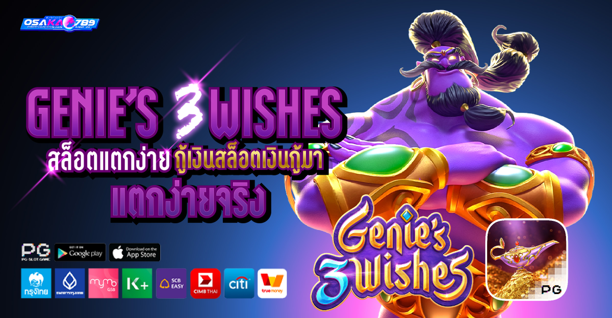 จีนี่ เรียกทรัพย์ มาสนุกสนาน พร้อมรับกำไรรัว ๆ กับเกม สล็อตแตกง่าย Genie's 3 Wishes สล็อตฟรีไม่ติดเทิร์น จากค่ายเกม PG SLOT พร้อมกู้เงิน สล็อตเงินกู้ มาเบท แตกง่ายขึ้นจริง ตัวช่วยเรื่องเงิน และเรื่องดวง ที่ คุณไม่ควรพลาด! มาสนุกสนานกับเกมสล็อตออนไลน์ พรีเมียม พร้อมกิจกรรม และบริการดี ๆ ที่ OSAKA789 ได้แล้ววันนี้!