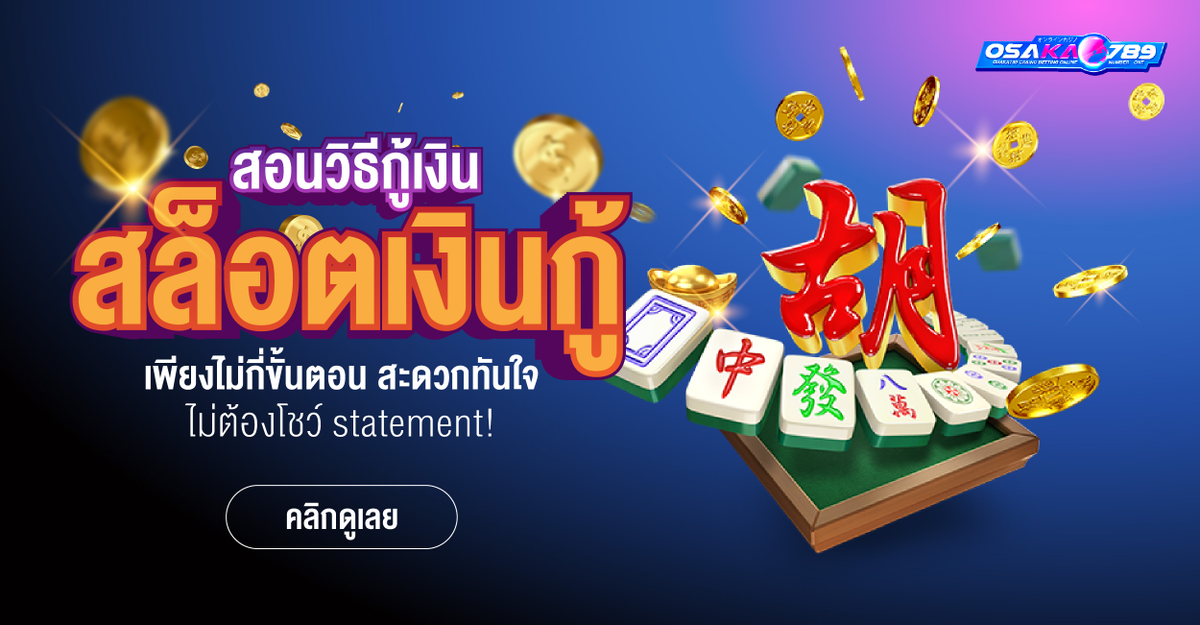 สล็อตเงินกู้ บริการใหม่ ใหม่ที่สุด จาก OSAKA789 สล็อตเว็บตรงแตกง่าย ตัวช่วยเรื่องเงิน สร้างเงิน เสกทุน เหมาะสำหรับนักพนันทุก ๆ ท่าน ที่ ต้องการลงทุน แต่งบน้อย! และวันนี้ เรามาพร้อมกับ บทความ สอนกู้สล็อตเงินกู้ ง่าย ๆ ไม่กี่ขั้นตอน ก็กู้ได้ทันที จะมีขั้นตอนอะไรบ้าง? ง่ายอย่างที่บอก จริงหรือไม่? ไปติดตามกัน!